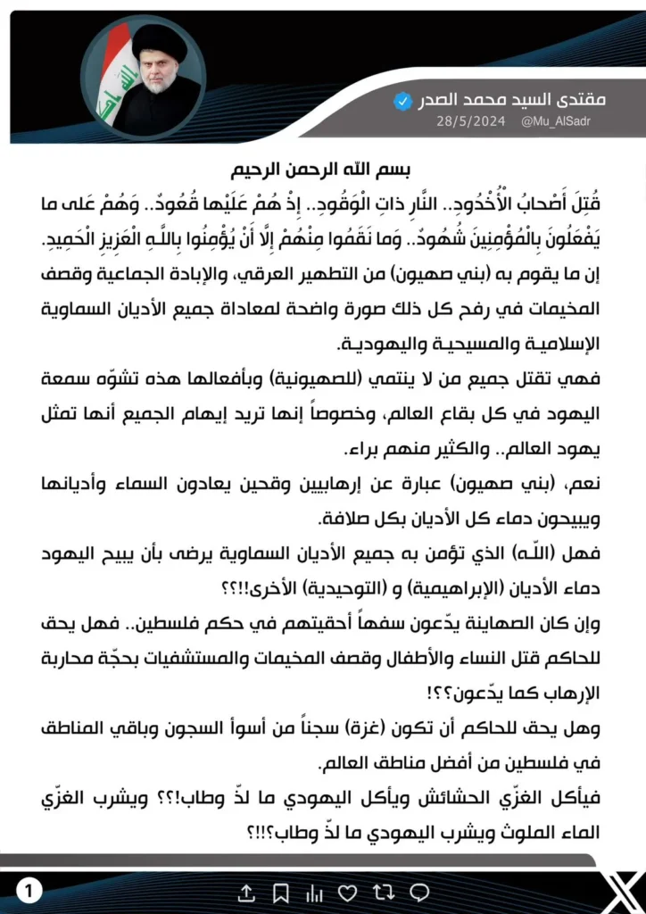 “الصهيونية تشوه سمعة اليهود”.. الصدر يطالب بطرد السفيرة الأمريكية وغلق السفارة ببغداد