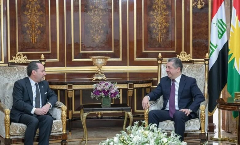 استقبل رئيس حكومة إقليم كردستان، مسرور بارزاني، اليوم الخميس، السفير دانيال روبنستين، القائم بأعمال السفارة الأمريكية لدى العراق، حيث تم مناقشة حصة الإقليم في الموازنة الاتحادية واستئناف تصدير النفط.